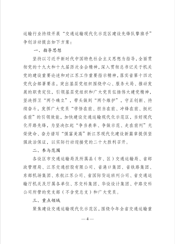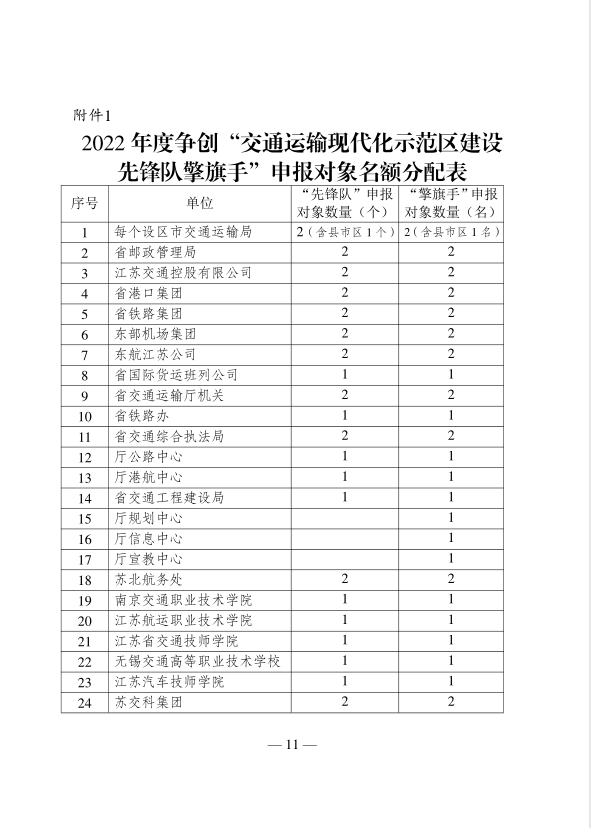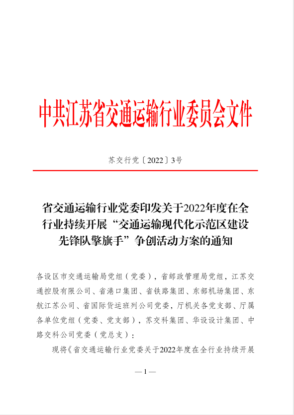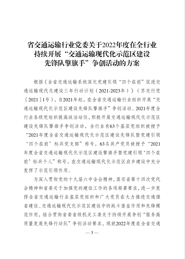 附件:《省交通行業(yè)黨委印發(fā)關(guān)于2022年度在全行業(yè)持續(xù)開(kāi)展“交通運(yùn)輸現(xiàn)代化示范區(qū)建設(shè)先鋒隊(duì)擎旗手”爭(zhēng)創(chuàng)活動(dòng)方案的通知》