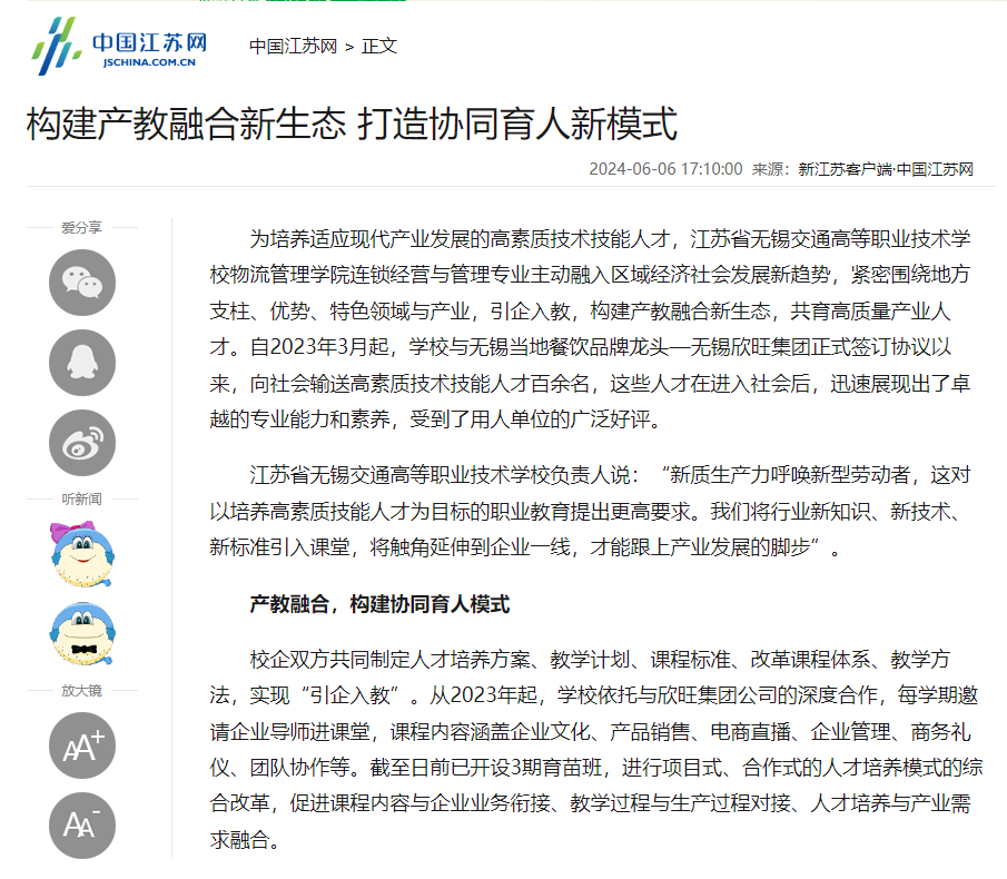 學(xué)習(xí)強國:江蘇無錫:構(gòu)建產(chǎn)教融合新生態(tài) 打造協(xié)同育人新模式