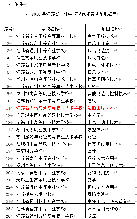 ? 1.2018年江蘇省職業(yè)學(xué)校現(xiàn)代化實(shí)訓(xùn)基地名單
