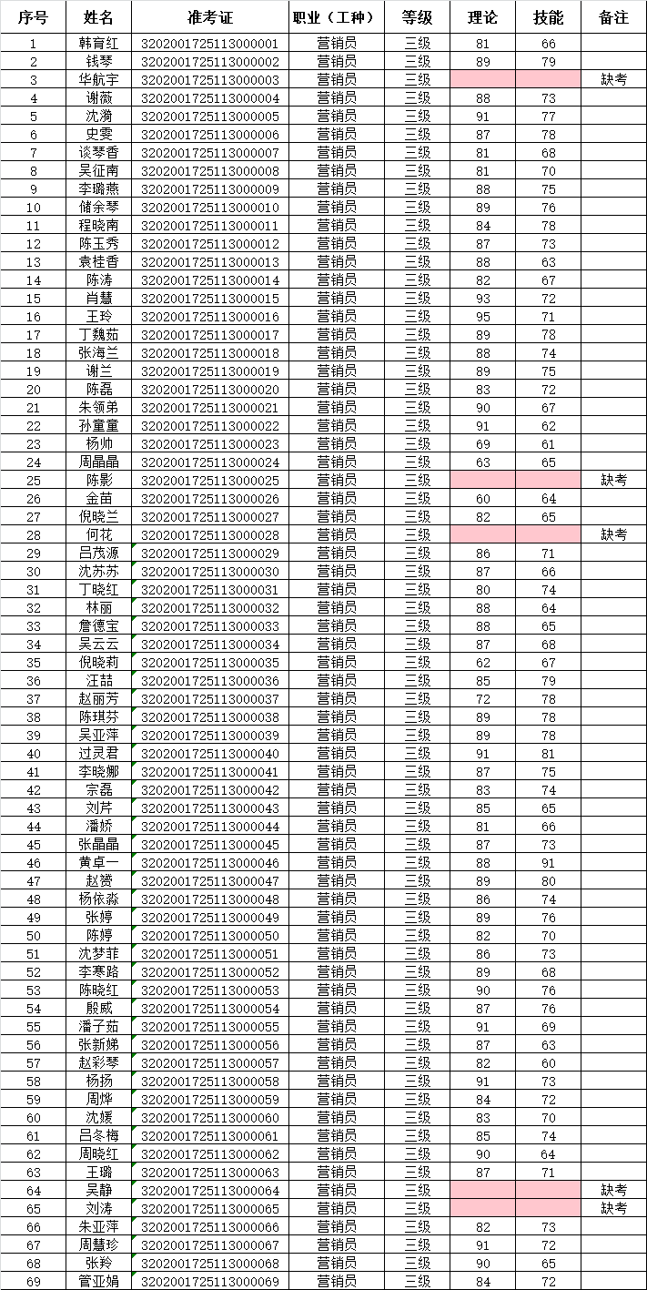 2025年11月30日,69名企業(yè)人員參加營銷員三級技能等級認(rèn)定考試(考試批次:2025-32020017-00047),共計64名成績獲得合格?,F(xiàn)將考試成績公示如下: