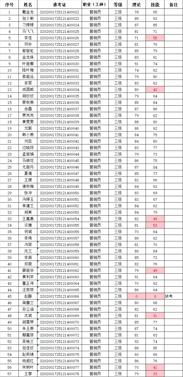 2025年12月14日,57名企業(yè)人員參加營銷員三級技能等級認定考試(考試批次:2025-32020017-00049),共計48名成績獲得合格。現(xiàn)將考試成績公示如下:
