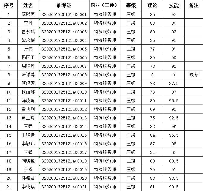 2025年12月14日,21名企業(yè)人員參加物流服務師三級技能等級認定考試(考試批次:2025-32020017-00050),共計21名成績獲得合格?,F(xiàn)將考試成績公示如下: