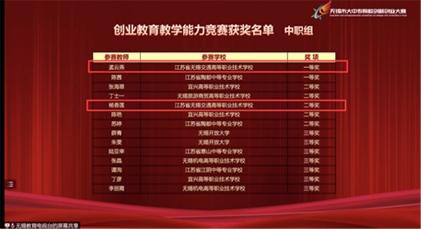 2022年4月18日-22日,由無錫市教育局、人社局、商務(wù)局、科技局、共青團(tuán)無錫市委員會(huì)、郵政局聯(lián)合主辦的"創(chuàng)響無錫"2021年無錫市大中專院校創(chuàng)新創(chuàng)業(yè)大賽以“云比賽”方式圓滿結(jié)束。我校8個(gè)入圍決賽的團(tuán)隊(duì)均獲獎(jiǎng),其中,一等獎(jiǎng)1項(xiàng)、二等獎(jiǎng)3項(xiàng),三等獎(jiǎng)4項(xiàng)。我校喜獲知識(shí)競(jìng)賽“優(yōu)秀組織獎(jiǎng)”。